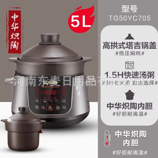 蘇泊爾電気シチュー鍋熱陶家庭用スープ大電力多機能5Lスマート予約土鍋TG50YC705