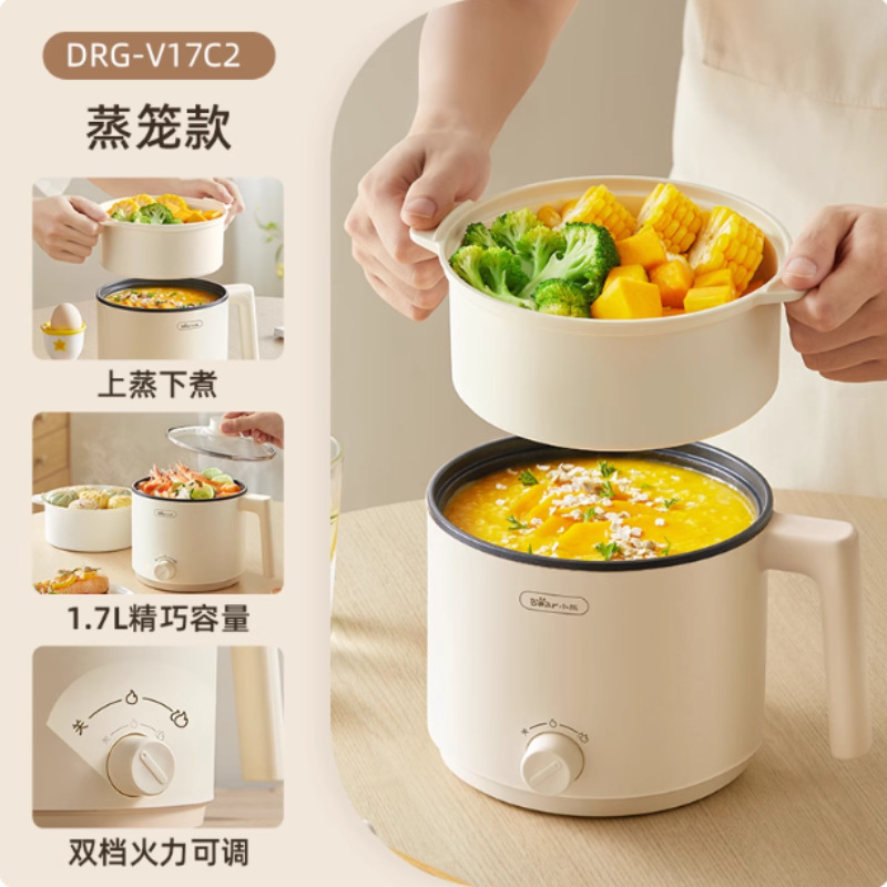 熊熊電気煮鍋多機能電熱鍋1.6l蒸煮一体蒸し器電気蒸し器DRG-E12L3