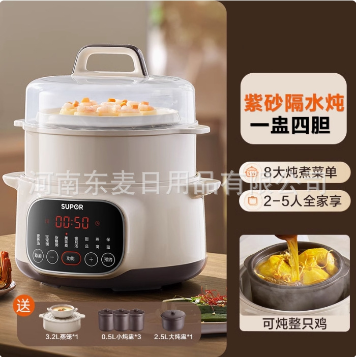 蘇泊爾シチューは水を隔てて家庭用の自動蒸し器スープの紫砂電気土鍋陶磁器の電気シチューの鍋を煮込みます。