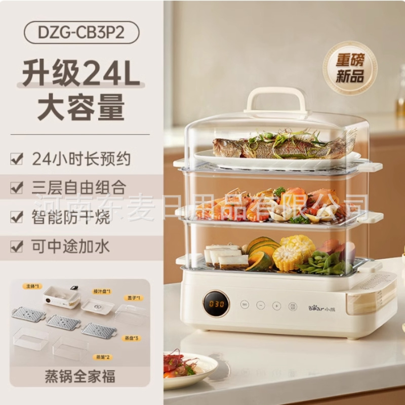 熊電気蒸し鍋多機能家庭用三層保温定時蒸気鍋蒸し器24l容量DZG-CB3P2