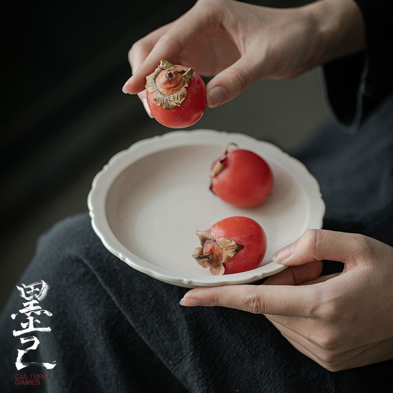 墨己草木灰釉花口壺承茶道部品ティーポット底托乾泡台多目的陶磁器茶点皿
