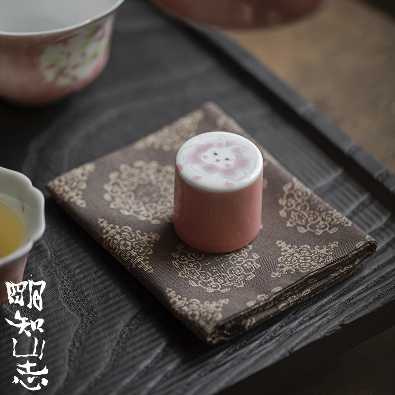 明知山志墨染手描き玉兎茶杯家庭用陶磁器茶単杯小蒼翠文人品茗杯