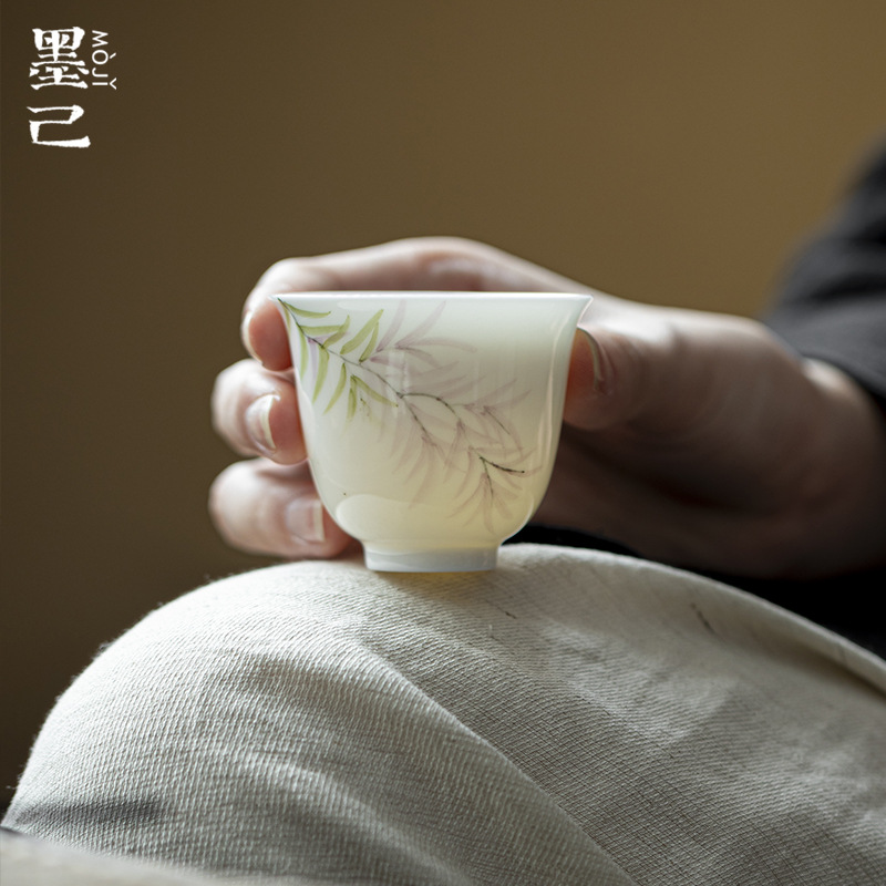 墨己手描き釉薬下彩品茗杯陶磁器文人杯茶杯主人杯単杯工夫茶具聚香杯