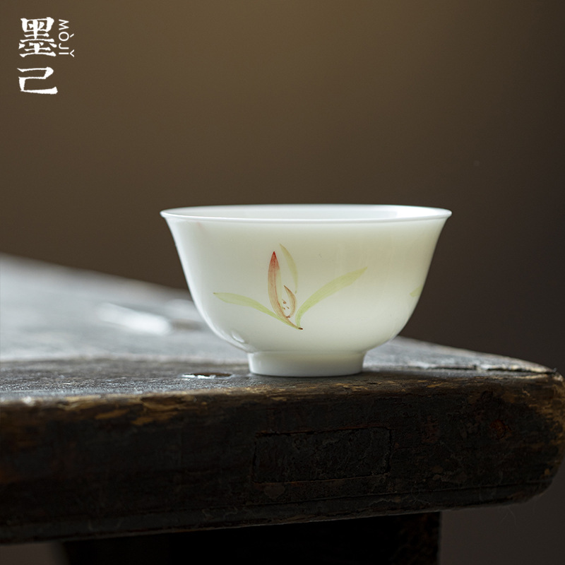 墨己手描き玉蘭陶磁器主人杯カンフー茶器大サイズ品茗杯広口プーアルカップ家庭用シングルカップ