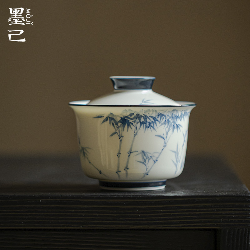 墨己玉磁器釉薬下彩青花手描き蓋碗家庭用陶磁器竹泡茶碗工夫茶道具茶碗