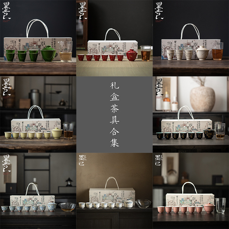 墨己クリアランスセール、茶器一式ギフトボックス入り、功夫茶器、家庭用、手描き文人器、陶磁器茶器セット