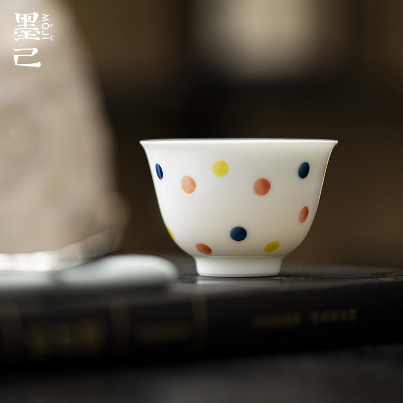 墨己玉泥白磁の手描きのポイントのお茶の杯の工夫の茶器の陶磁器の家庭の単杯の薄いタイヤはお茶のコップを飲みます。