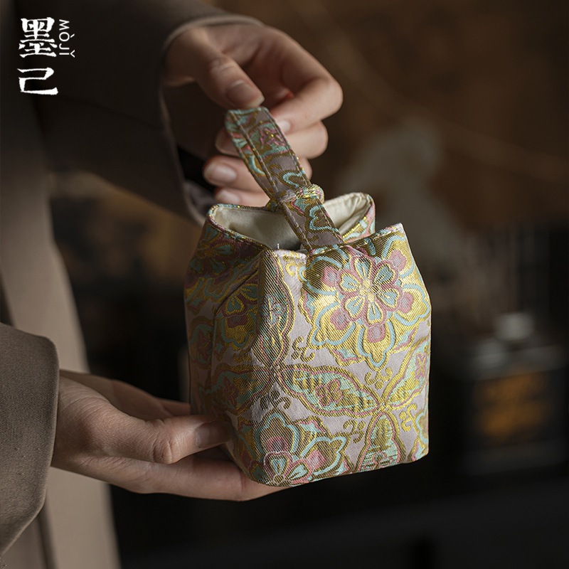 墨己刺繍布芸金色主人杯収納袋茶道部品屋外携帯旅行茶器収納バッグ