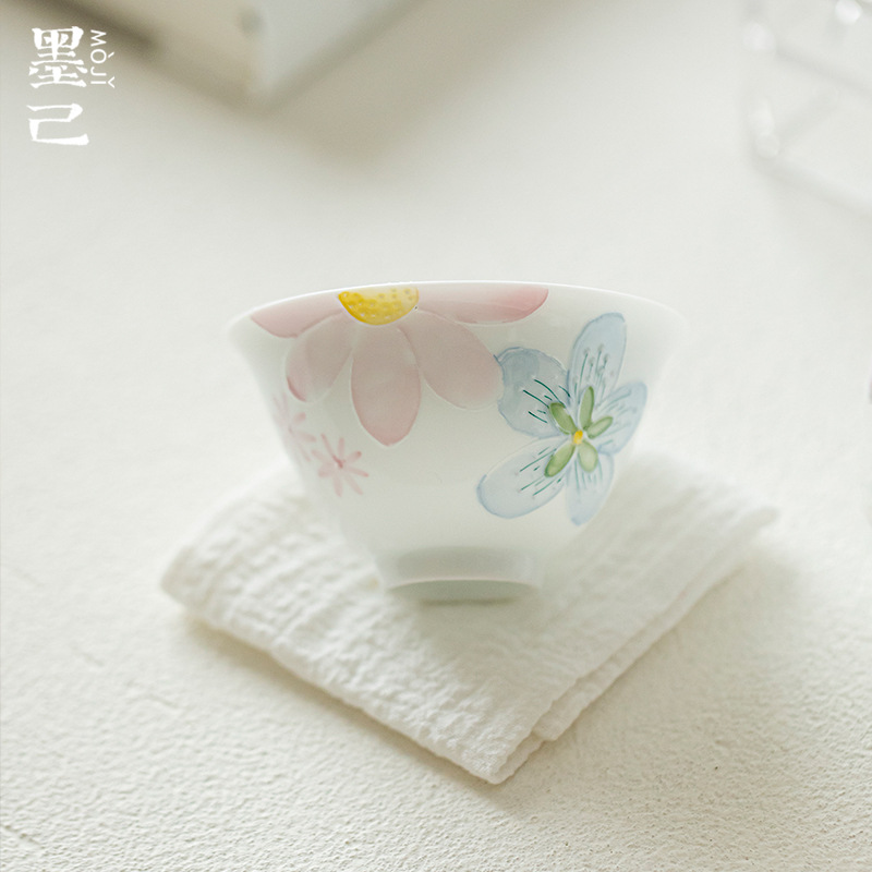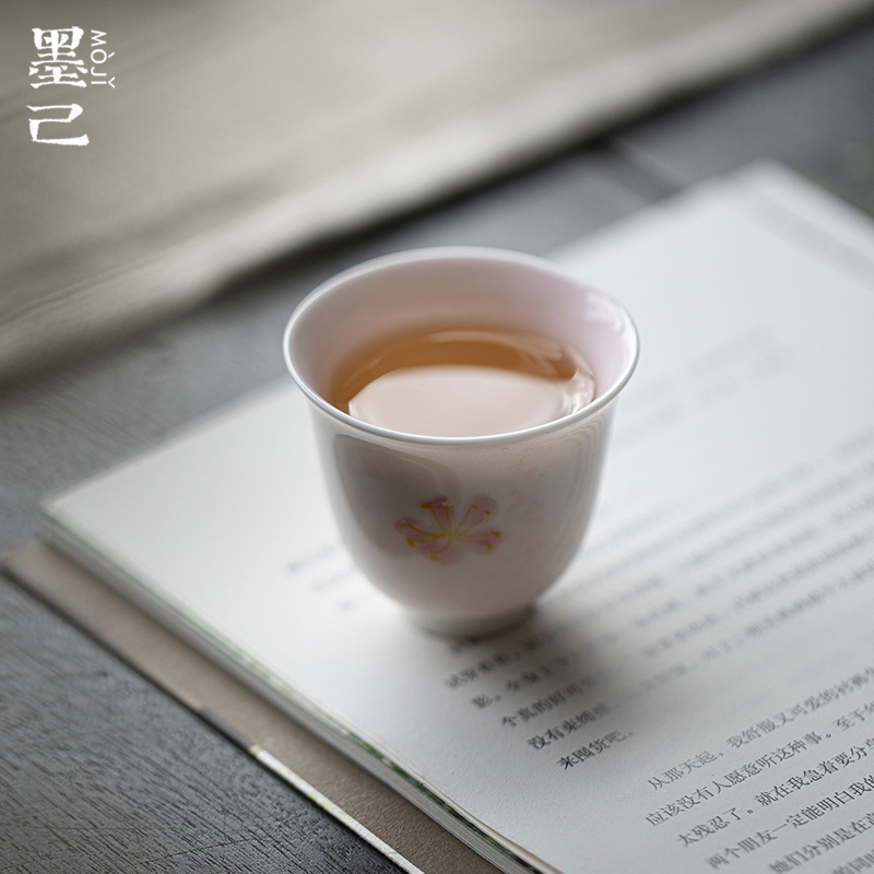 墨己玉泥白磁器手描き有田焼満花主人杯カンフー茶器薄胎家用陶磁器品茗杯