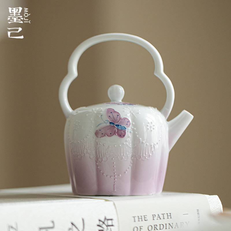 墨己玉泥手描き有田焼蝶グラデーション紫提梁壺工夫茶道具ボール穴ろ過陶磁器ティーポット