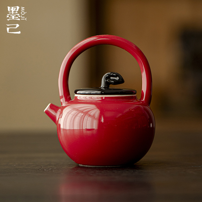 墨己丹霞墨韻色釉薬陶磁器提梁壺カンフー茶器赤いお祝いボール穴ろ過家庭用ティーポット