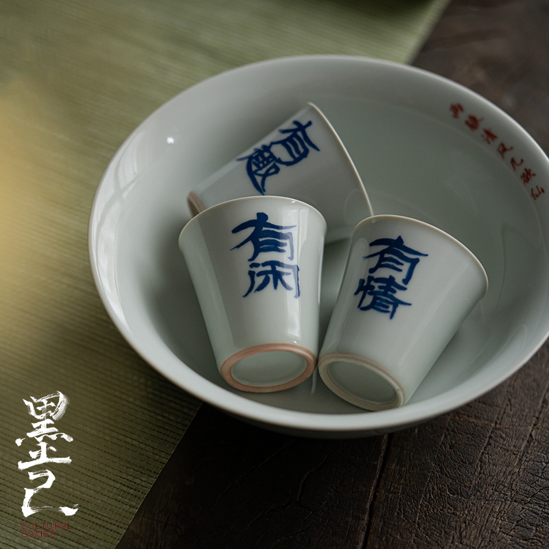 墨己青花手書き品茗杯カンフー茶器陶磁器聞香杯は暇があります。