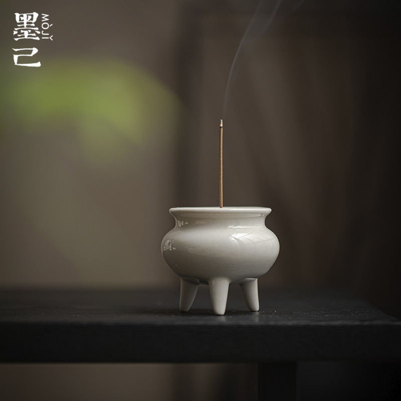 墨己草木灰三足は宋小線香炉家庭用室内禅意香道陶磁器の置物ストーブに似せています。