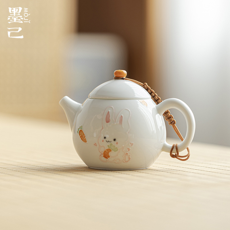 墨己玉泥白磁手描き萌え兎ティーポット工夫茶器家庭用ボール穴濾過手執陶磁器小壺