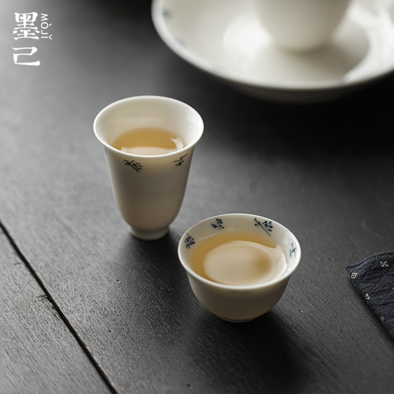 墨己手書き詩文品茗杯工夫茶器家庭用お茶一杯玉泥白磁青花文人カップ