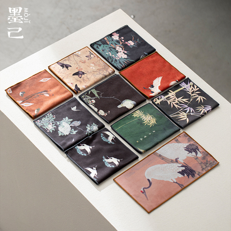 墨己中国式のスエードの長いタイプの茶巾の茶道の部品の家庭用吸水国風の布芸は多く茶席の彩色絵を使います。