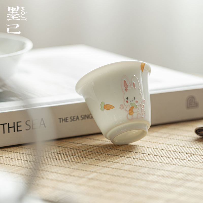 墨己玉泥白磁手描き萌え兎品茗杯カンフー茶器お茶を飲む一杯の小さいコップのかわいい風陶磁器のコップ