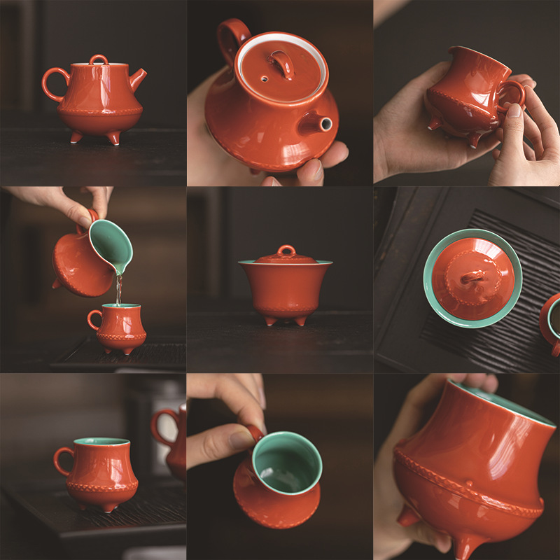 墨己故宮紅松石緑三足の工夫茶器陶磁器蓋碗茶壺承茶道部品合集