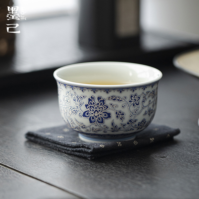 墨己銀紋青花連理枝圧手杯工夫茶器陶磁器家庭用大型主人杯プーアルカップ