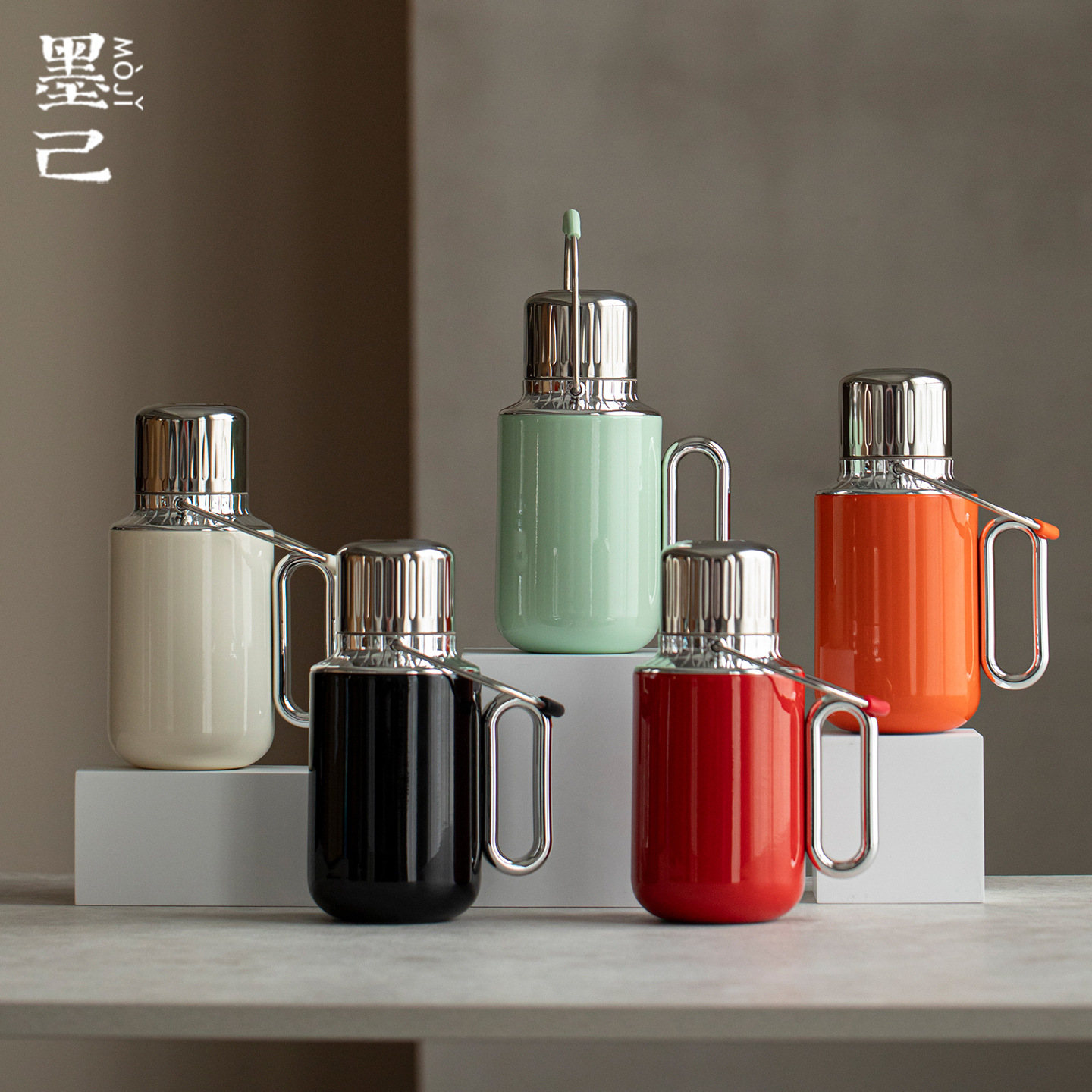 墨己新款提梁焖茶壶家用316不锈钢机械温显复古便携户外保温水壶