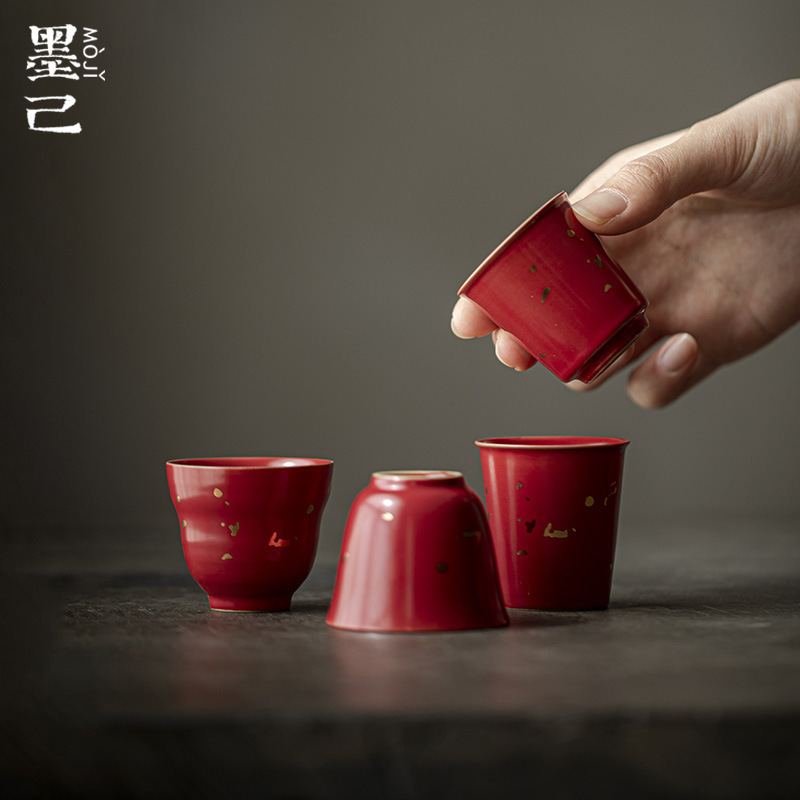Moji サンザシレッド和風ゴールドティーカップカンフーティーセットセラミック家庭用レッドホットスタンピング小さなティーカップシングルカップ