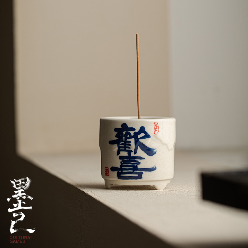墨己陶磁器青花手書き小香炉線香挿し台座茶道香道部品草木灰香炉