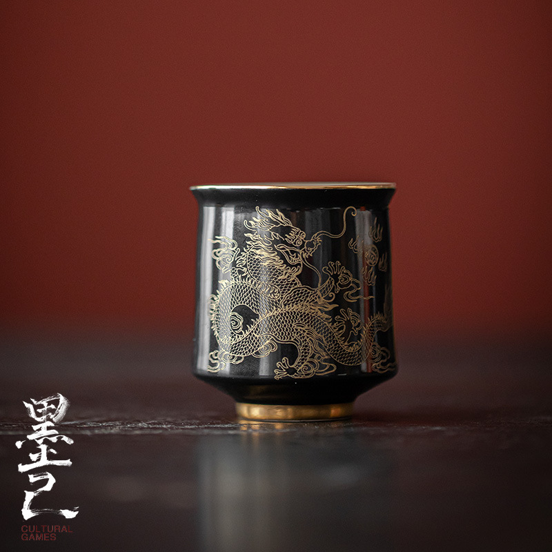 墨己黒地描金陶磁器主人杯元本手描き龍騰品茗杯家庭用男性カップ