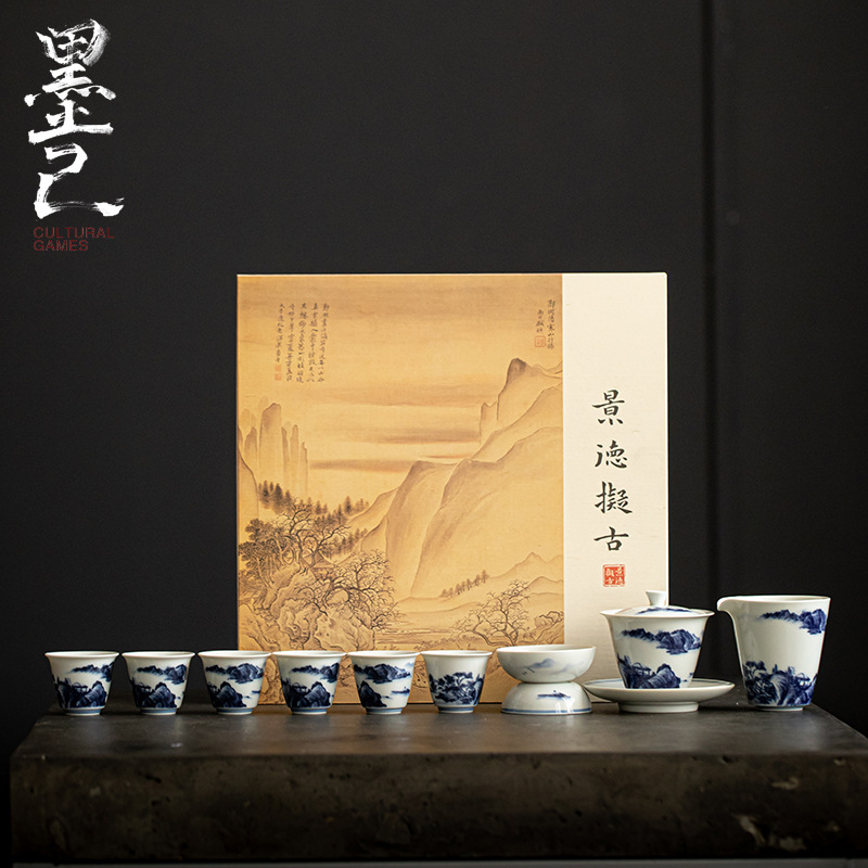 墨己青花陶磁器セット茶道具は古文人空間家庭用工夫茶器セットギフトボックスに似せている