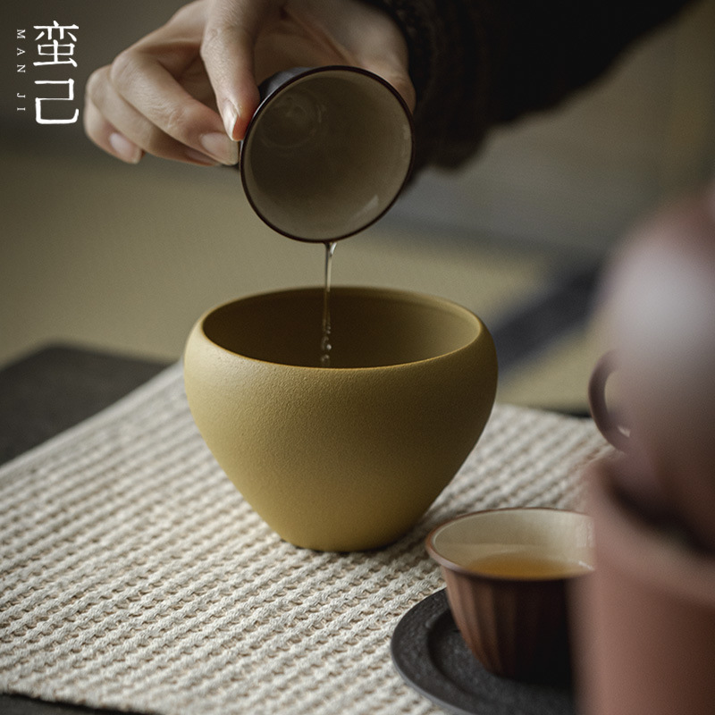 蛮己日本式粗陶寂風廃水筒茶道部品家庭用建水乾泡用貯水陶磁器水盆