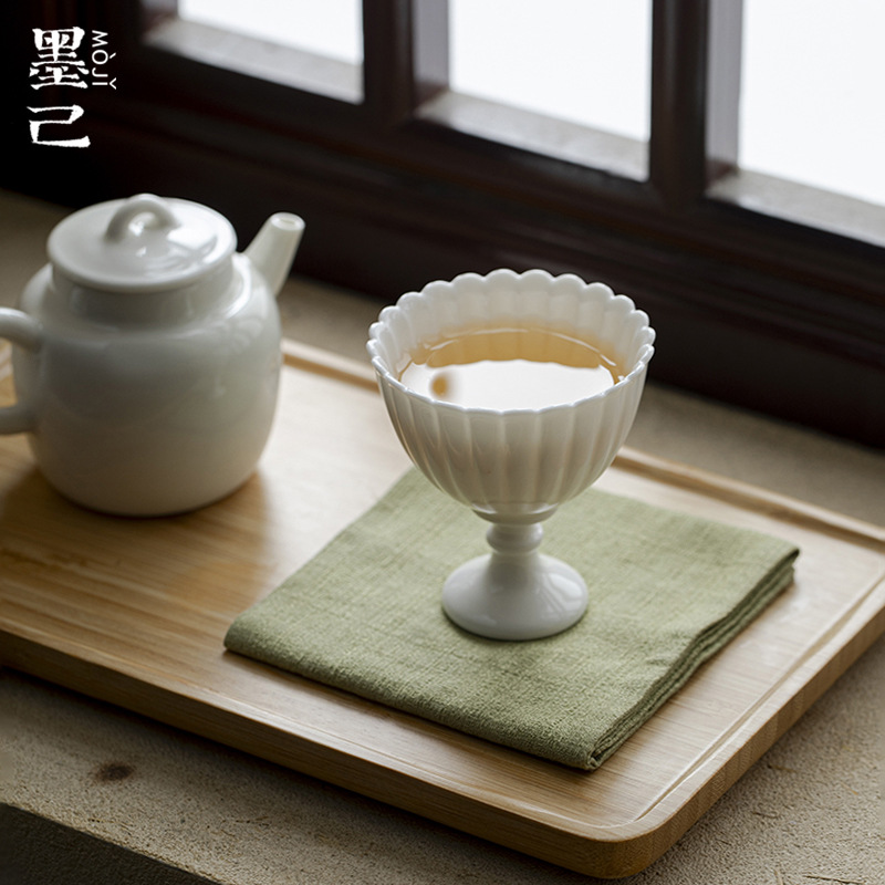 墨己玉泥白磁は宋高足花口茶杯の工夫茶器菊口主人杯をまねて一人で一杯飲む。