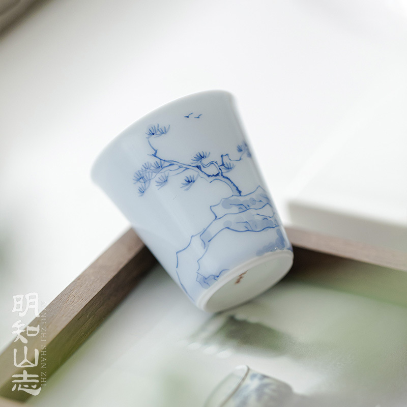 山志晴山藍高山勁松斜陽茶杯手描き松家庭用品茗杯工夫茶具杯