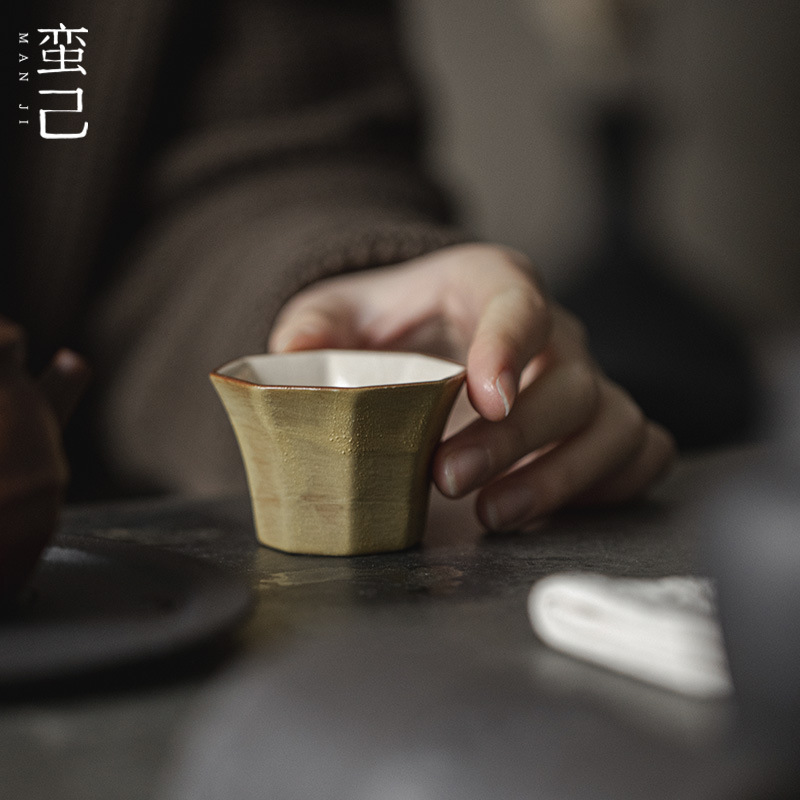 蛮己日本式粗陶寂風八方茶杯工夫茶器家庭用模造古泥陶磁器品茗杯単杯