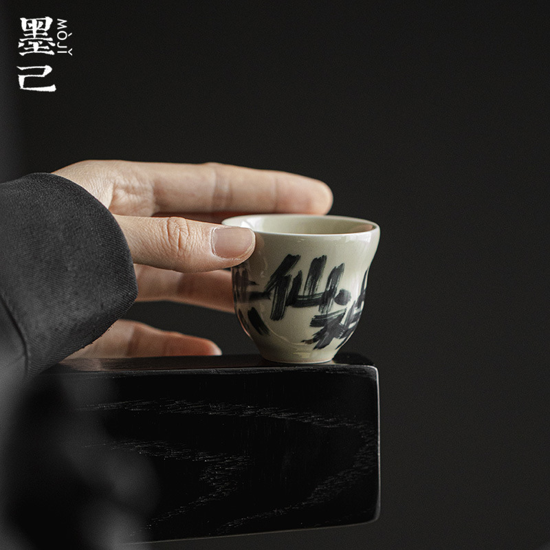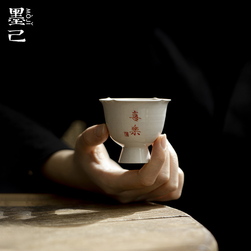 墨己草木灰手書き喜び高足カップは宋花口陶磁器品茗杯工夫茶器単杯でお茶を飲む