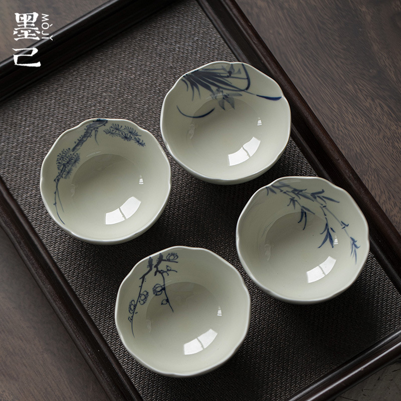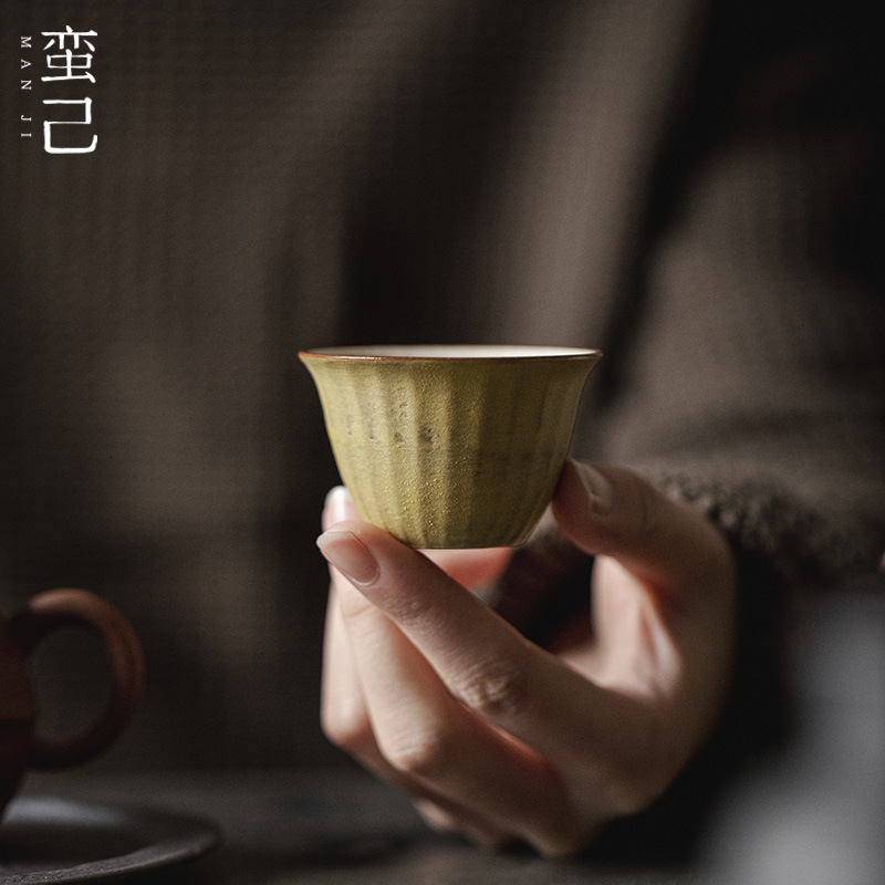 墨己月黄色釉薬陶磁器品茗杯工夫茶器描辺小湯飲みシングルカップ家庭用お茶カップ