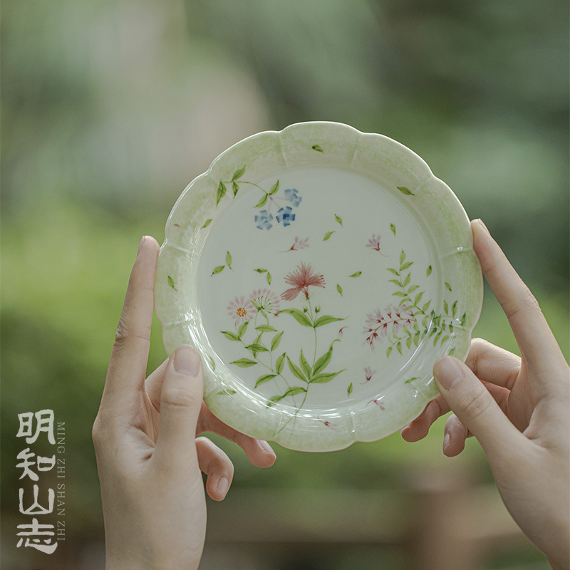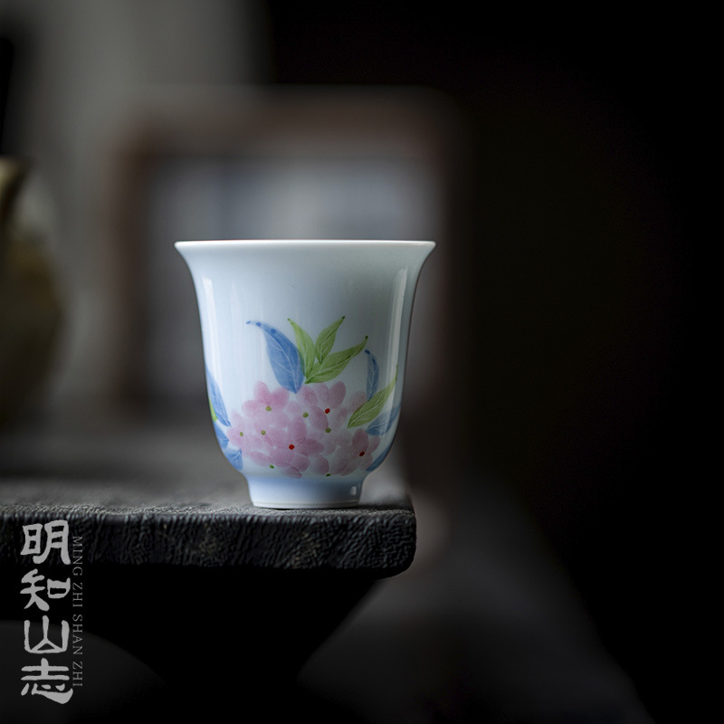 山志艾緑悠悠空塵雲霊茶杯手描き花口陶磁器茶杯工夫茶具品茗杯