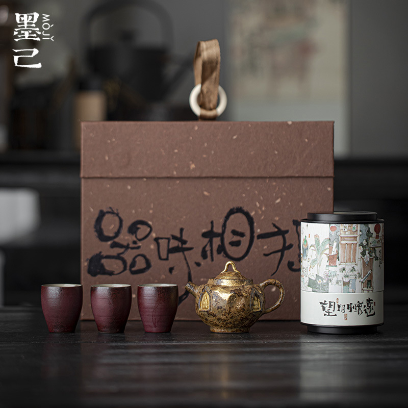 墨己独立設計師聯名金お土産セット一壺三杯日本式茶器家庭用セットギフトボックス