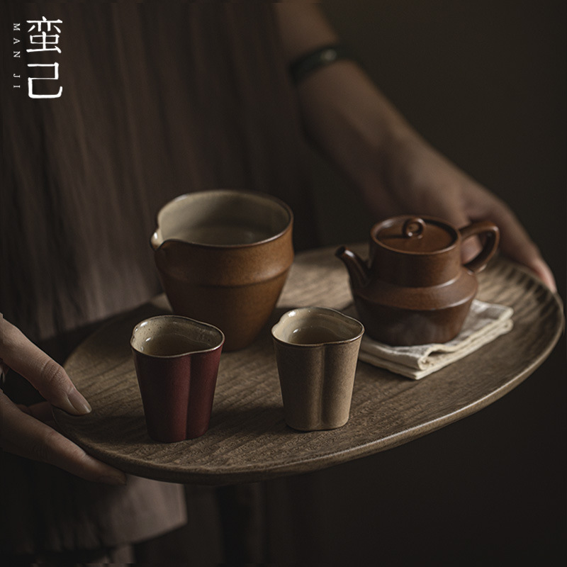 蛮己日本式陶磁茶皿家庭用茶器乾燥泡皿壺承茶道部品寂風粗陶茶器収納