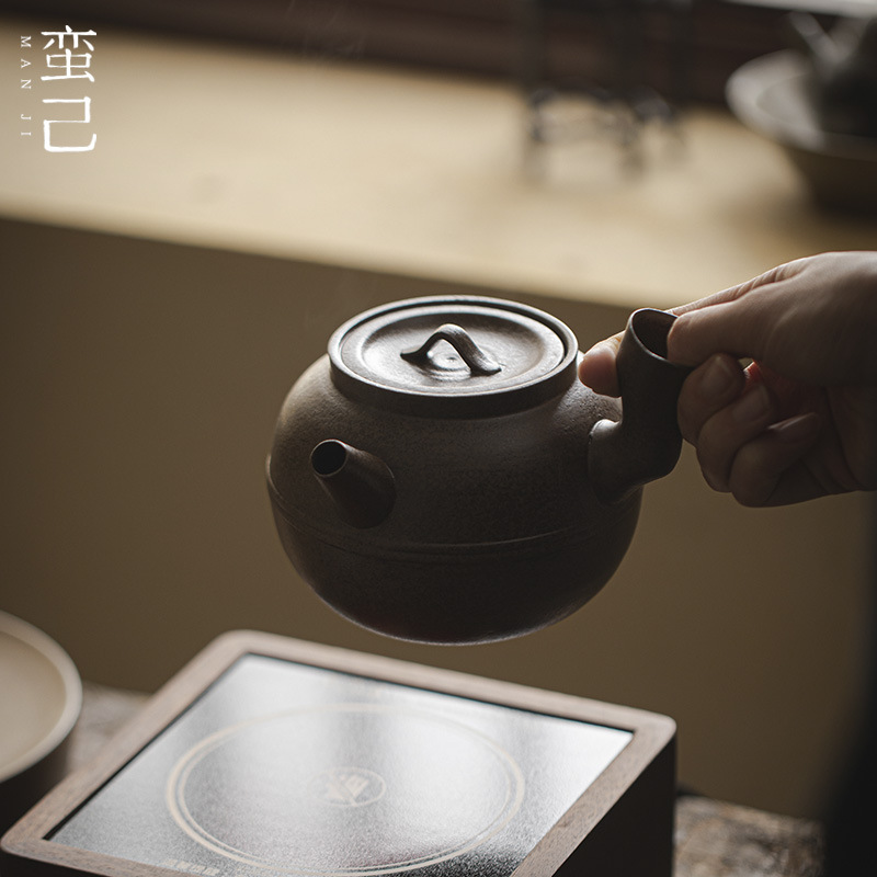 蛮己寂風粗陶小円壺カンフー茶器家庭用陶磁器単壺柴焼老岩泥泡茶単壺