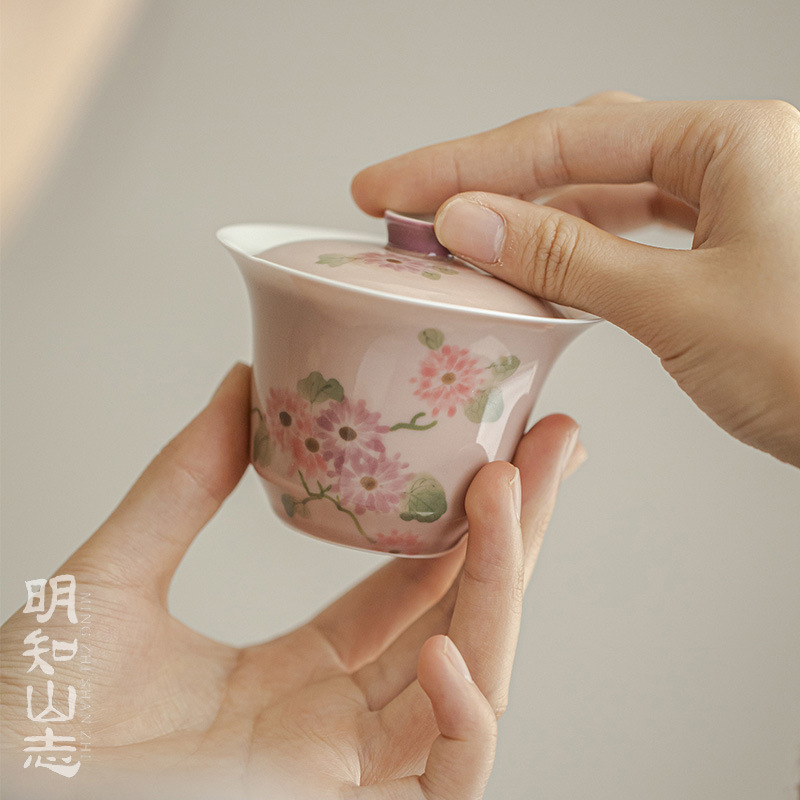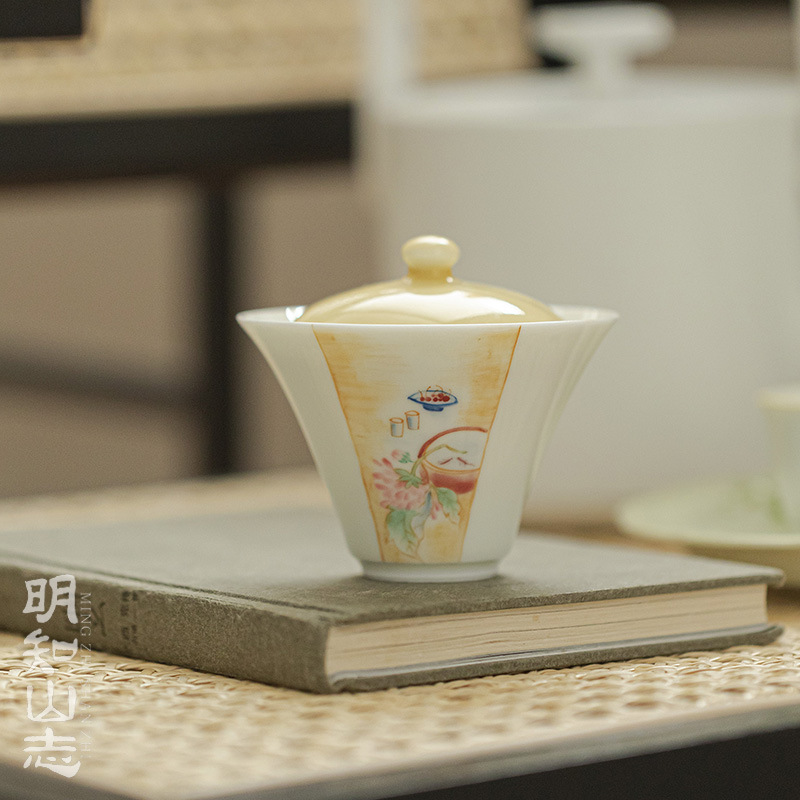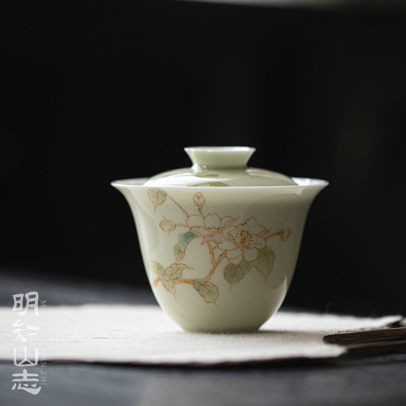 明知山志蒼煙紅結芳望舒蓋碗手描き薄胎陶磁器蓋碗工夫茶器家庭用茶碗