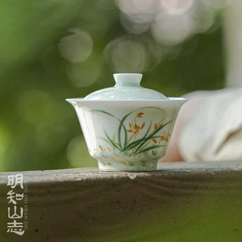 明知山志果青蘭芳草高歌蓋碗手描き蘭岩茶泡茶碗工夫茶器茶碗
