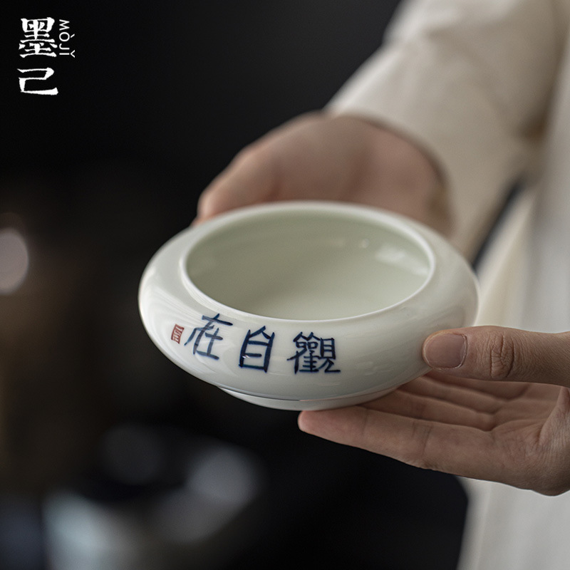 墨己粉青手書き青花小建水茶器部品廃水筒茶道花芸盆陶磁器多用皿