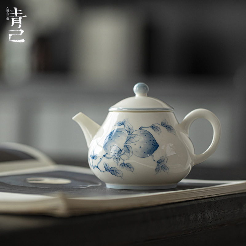 青己手描き陶磁器ティーポット工夫茶道具文人器青花泡ティーポットボール穴ろ過寿桃単壺