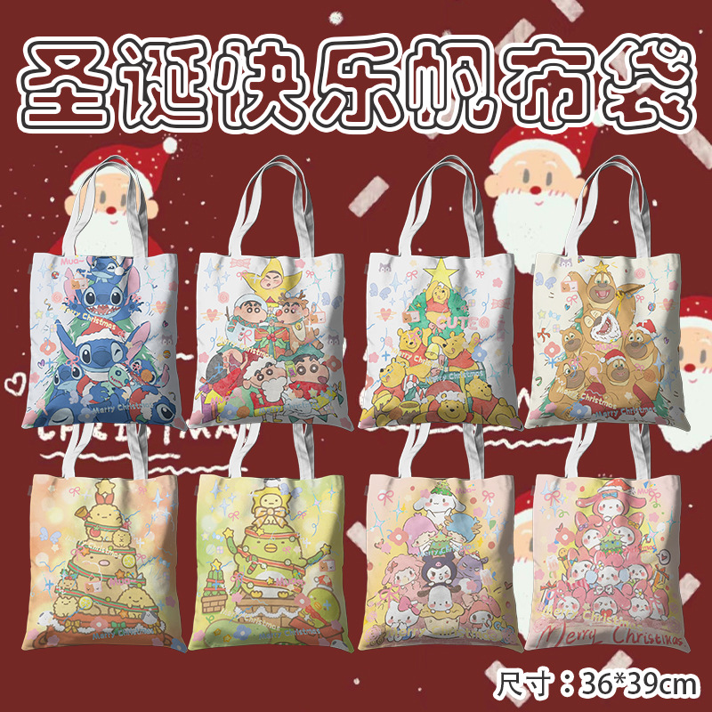 クリスマス楽しいキャンバスバッグ36x39cmアニメ周辺の韓国版学生は肩掛けレジ袋卸売りをしている