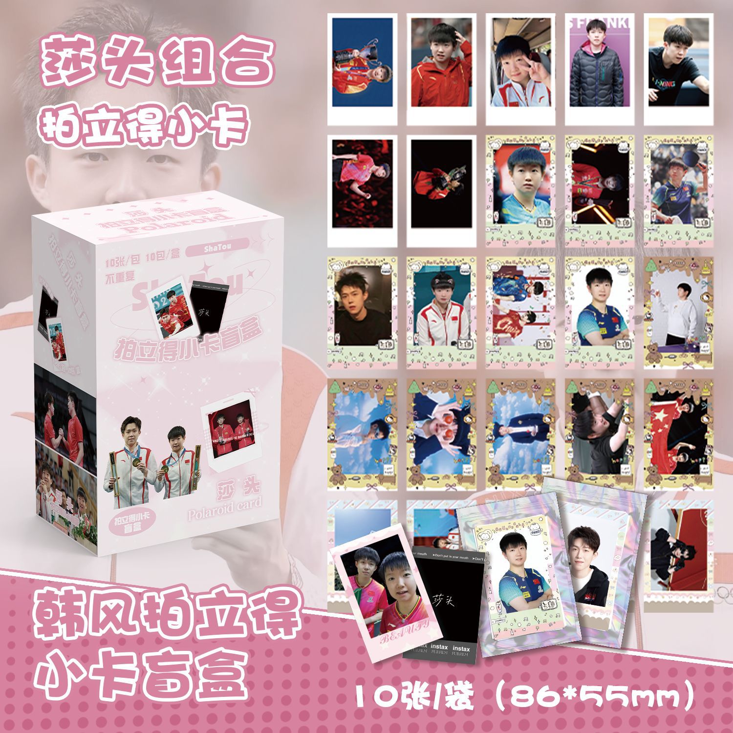 莎頭グループはブラインドボックスに100枚の王楚欽孫穎莎CP韓風小カードの葉書を撮影しました。