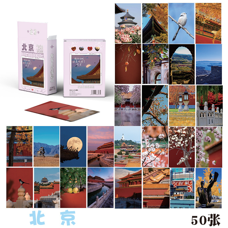 北京小カードケース50枚57x86mm都市観光記念名勝風景レーザーカード葉書