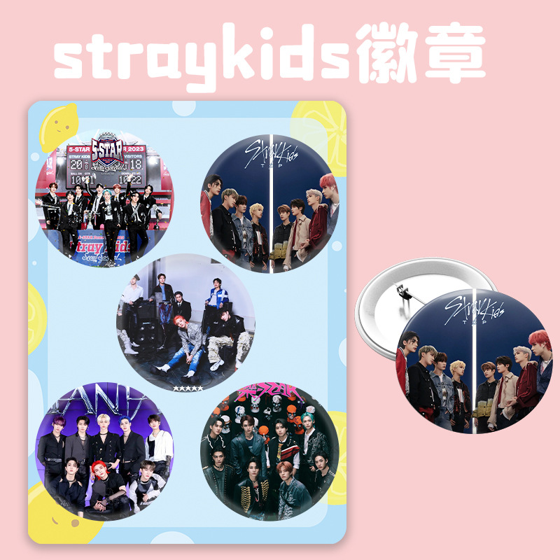 ストレイキッド缶バッジ1枚セット直径45mmスターグッズブリキブローチピンバッジ5枚セット