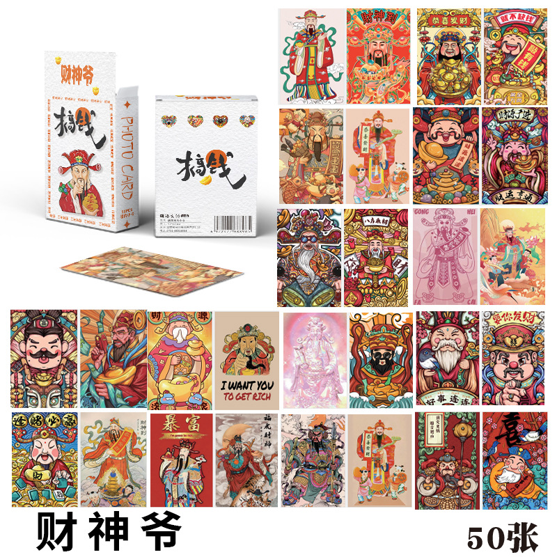 財神爺小カードケース50枚57x86mm招財開運財神像レーザーカード葉書