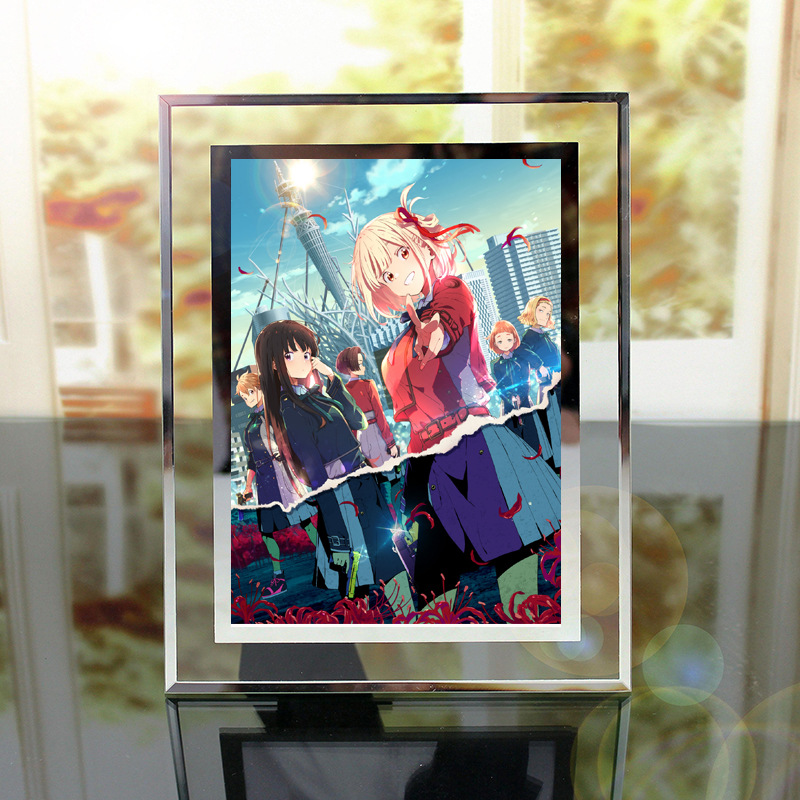 リコリス水晶フォトフレームには、6インチの写真クラフト紙箱包装アニメ周辺のガラス置物フレームが含まれています