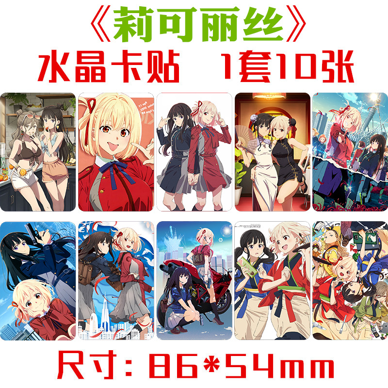 リコリス水晶カード1セット10枚のアニメ周辺の小カード食事カードバスカードステッカー