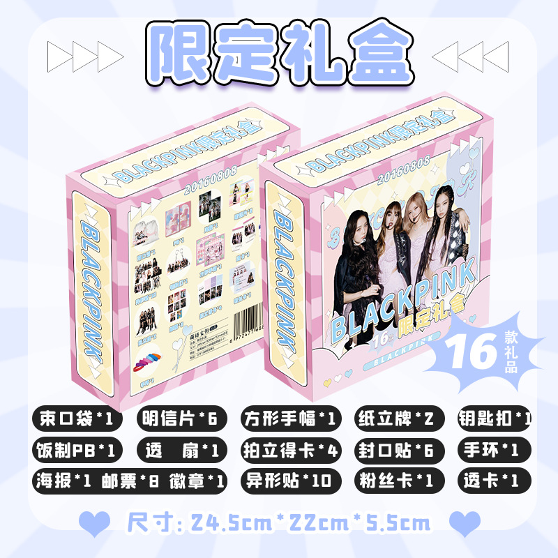 Blockpink限定ギフトボックス22x24x5x5cmラケット16种类のスターグッズを含む応援ギフト
